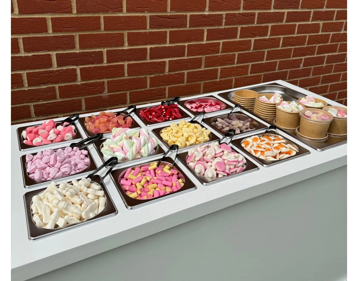 Add a sugary twist to your event with our delightful sweet Buffet! We'll set up a beautifully styled cart or table packed with a tempting selection of treats, so your guests can fill their bags with all their favourite sweets. With a variety of goodies to choose from, it’s a fun and tasty way to keep everyone smiling throughout your event!