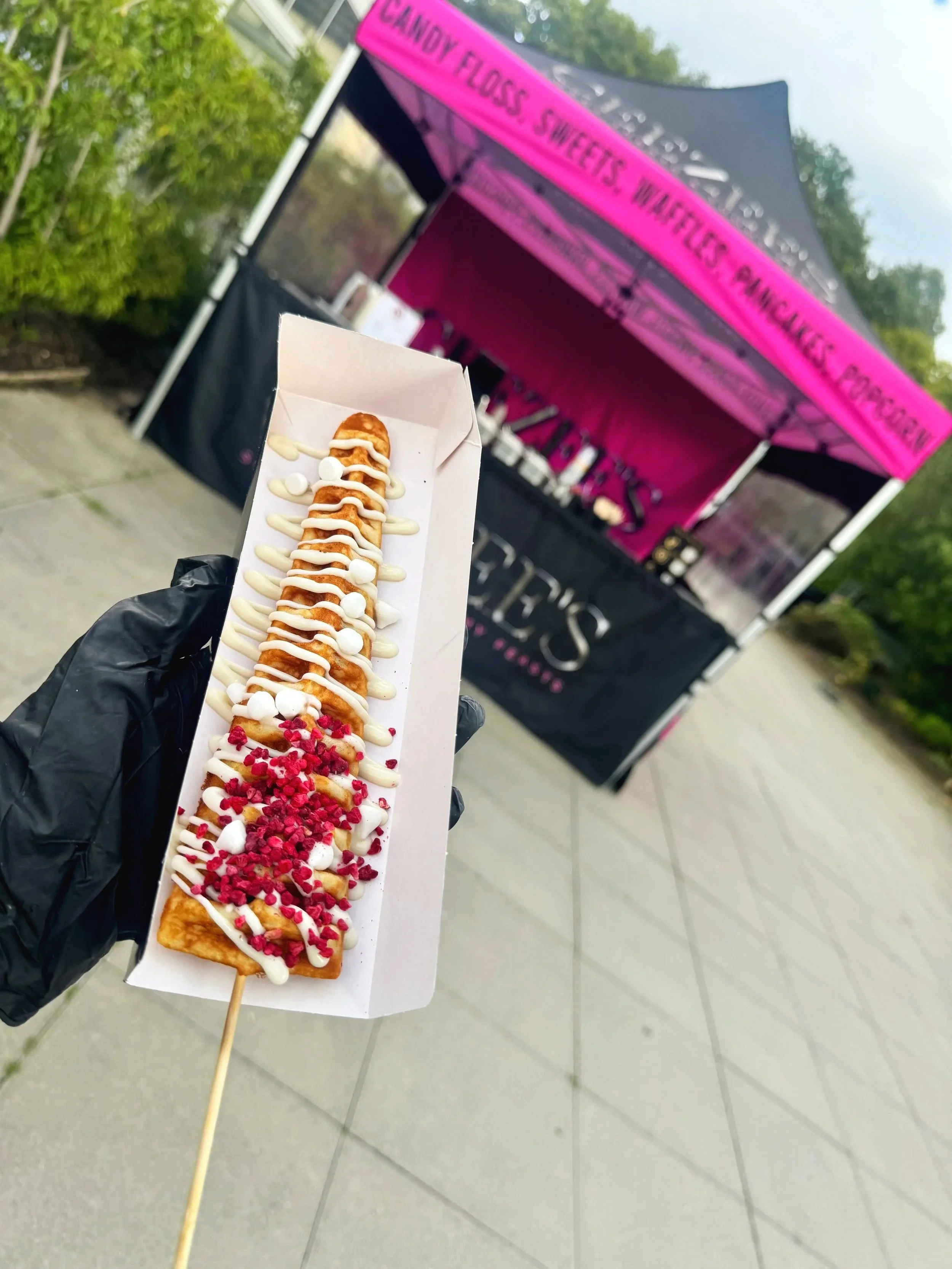 Picture this: A Live Cooking Station serving up hot, fluffy waffles on a stick, golden and crispy, topped with irresistible sauces and gorgeous toppings. A fun, mouth watering treat that'll have your guests buzzing with excitement!